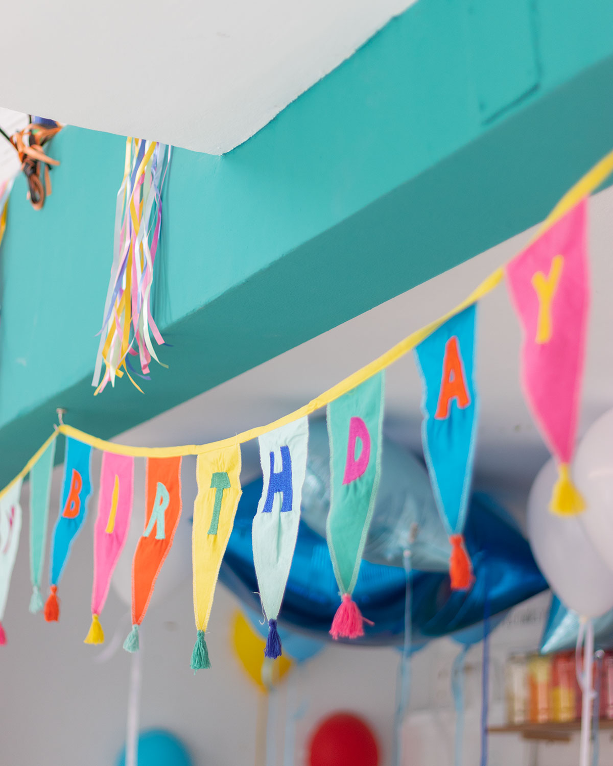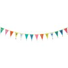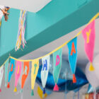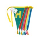 Bonito banderín de tela en multicolor con pompones en las puntas y bordado HAPPY BIRTHDAY con hilo dorado. Este banderín reutilizable está hecho a mano y con algodón 100% sostenible y lavable.Sirve tanto para exterior como para interior para dar un toque de color a cualquier cumple. Mide 3m y tiene 12 banderines.