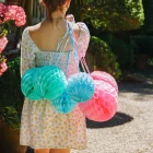 Pack de 3 bolas de nido de abeja en 3 tamaños: 18cm color azul claro, 20cm color menta y 25cm color rosa. Traen su cuerda para poder colgarlas.