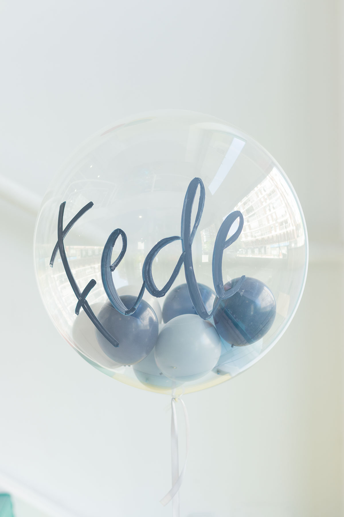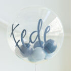 Globo burbuja de 58cm hinchado con helio con mini globitos en su interior en la combinación de colores que elijas. Podrás personalizarlo con el texto que quieras y elegir el peso.