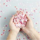 Caja de confetti de papel en tonos rosas y lilas, el conffetti mide 10 mm. La caja contiene 20gr.