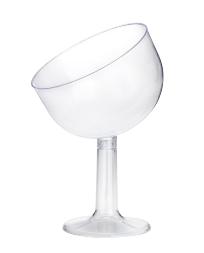 Copa inclinada transparente, perfecta para dar altura en el candybar. Mide16x26cm