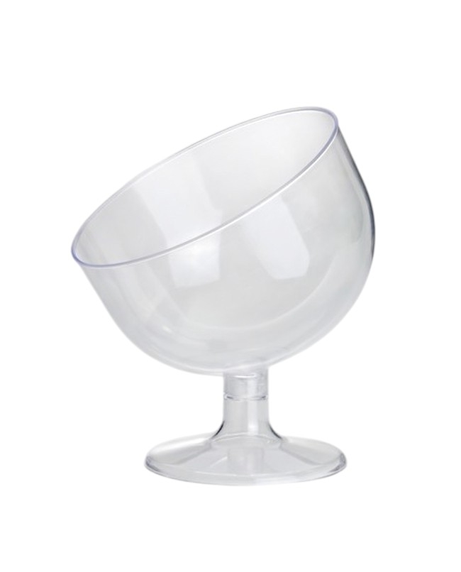 Copa inclinada transparente, perfecta para dar altura en el candybar. Mide16x19cm