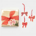 Pack de 8 etiquetas en forma de lazo en 4 diseños. Incluye cordón rojo. Puedes cimbinRlas con nuestro papel de regalo en color metalizado