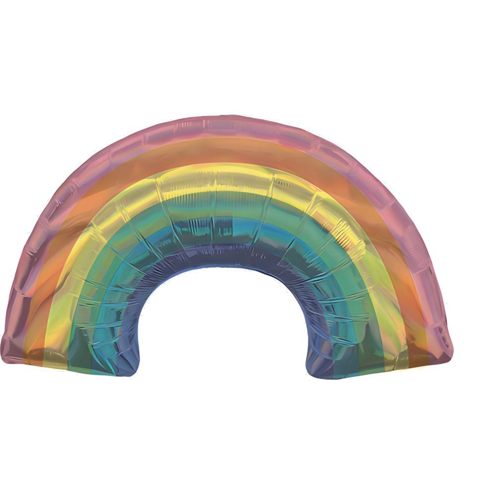 Chulísimo globo de foil metalizado con forma de arcoiris con colores vivos , mide 86cm y está hinchado con helio.