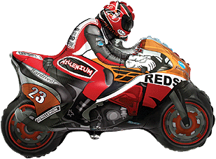 Globo de foil con forma de moto de carreras, hinchado con helio. Mide 80cm aproximadamente.