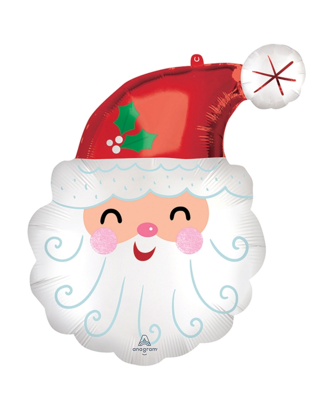 Globo de foil metalizado con forma de cara de papa noel, mide 69cm y va hinchado con helio.