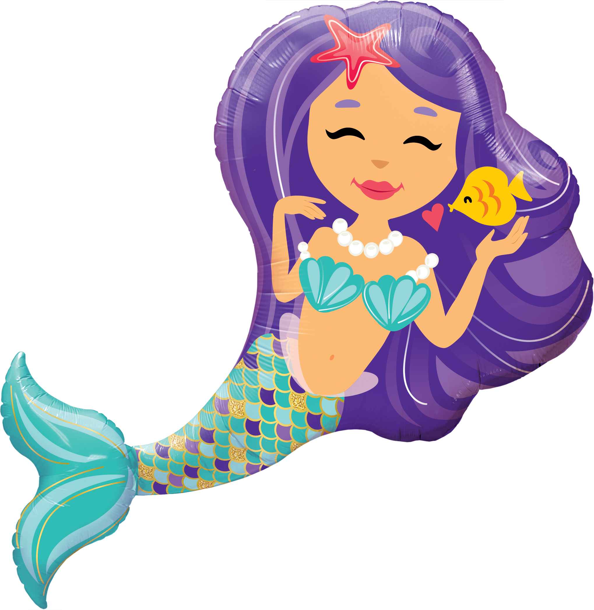 Globo de foil con forma de sirena de 86cm de largo, está hinchado con helio.