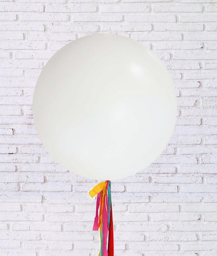 Globo látex biodegradable blanco XL (90cm) decorado con tiras multicolor de papel crepe. Va atado a un tarro de chuches. Da una sorpresa a alguien porque sí y alucinará. Se lo llevamos a su casa, al trabajo… Si estás invitad@ a una fiesta, esté será sin duda el mejor regalo! SÓLO ENVÍAMOS GLOBOS HINCHADOS CON HELIO DENTRO DE LA M-40 DE MADRID. PLAZO DE ENTREGA: NECESITAMOS MÍNIMO 4H PARA PREPARAR Y ENTREGAR TU PEDIDO. LAS ENTREGAS SE HARÁN DENTRO DE NUESTRO HORARIO COMERCIAL (L A V DE 10:30 a 20:30, S DE 10:30 a 15). SI HACES EL PEDIDO FUERA DE HORARIO, ENTREGAREMOS A LO LARGO DE TODA LA MAÑANA DEL SIGUIENTE DÍA HÁBIL. TAMBIÉN PUEDES HACER UN PEDIDO PARA ENTREGAR EN UNA FECHA POSTERIOR. IMPORTANTE INDICAR SIEMPRE EN COMENTARIOS DE PEDIDO: 1. FECHA DE ENTREGA Y HORA APROXIMADA. 2. MENSAJE PARA EL DESTINATARIO.