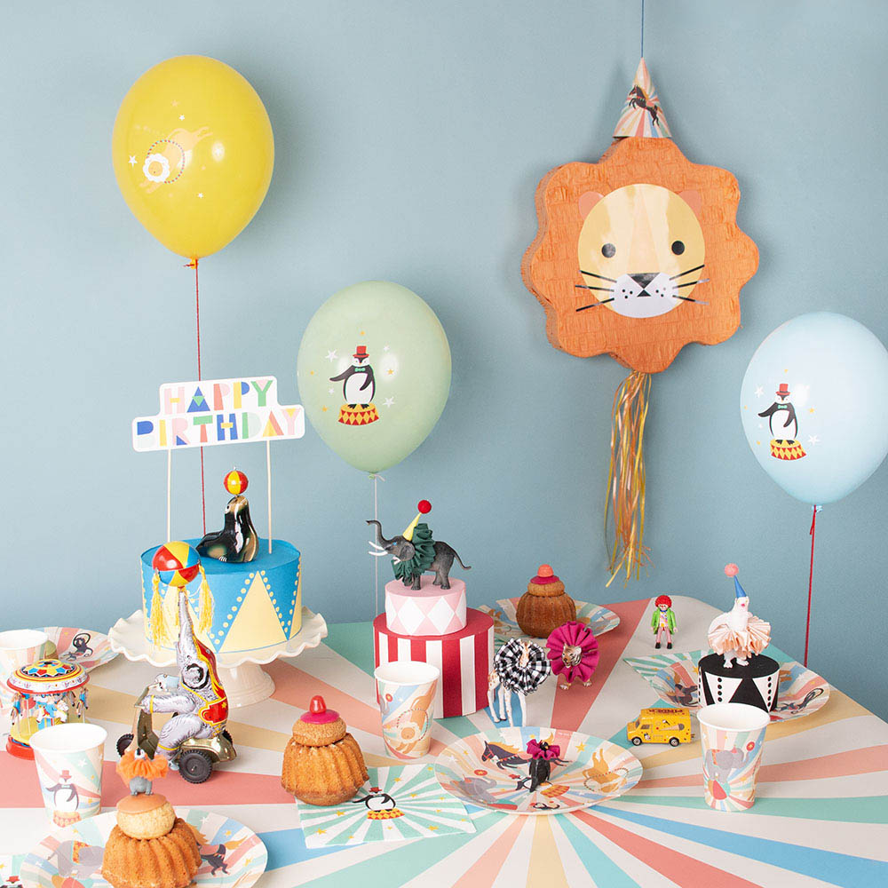 Pack de 5 globos de látex 100% natural, pintados con tintas vegetales en EU. Impresos con diseños de animales de circo.