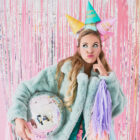 Pack de 6 gorros de cumpleaños de cartón surtidos en colores pastel y con el texto HAPPY BIRTHDAY en dorado, miden 16cm de alto x 10cm de diámetro aprox. Incluye goma elástica para sujetarlo a la cabeza.