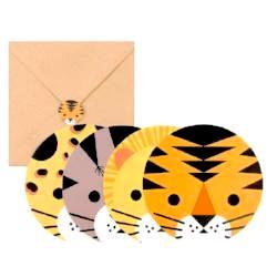 El set incluye 2 invitaciones de tigre, 2 de leopardo, 2 de león y 2 de pantera.