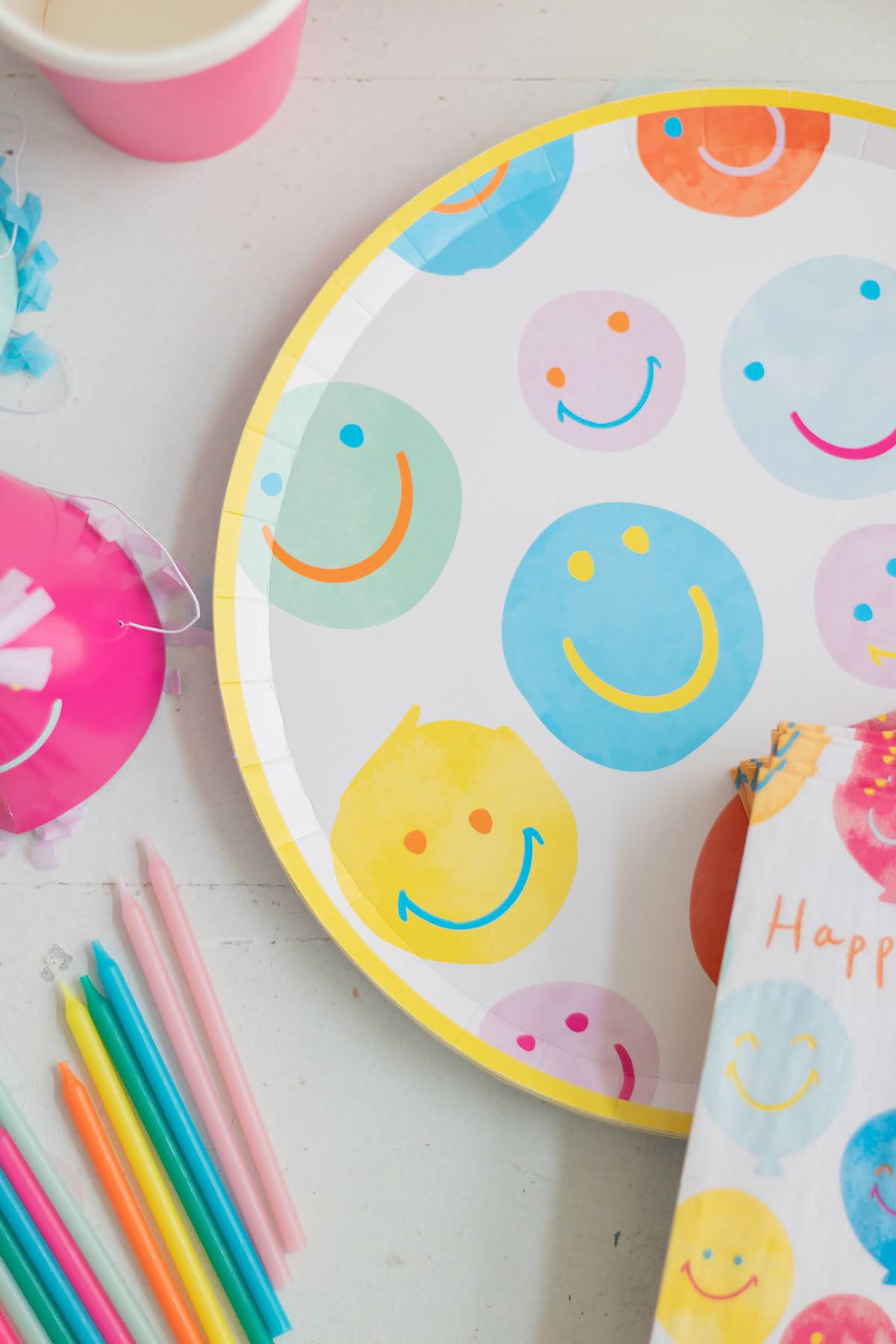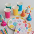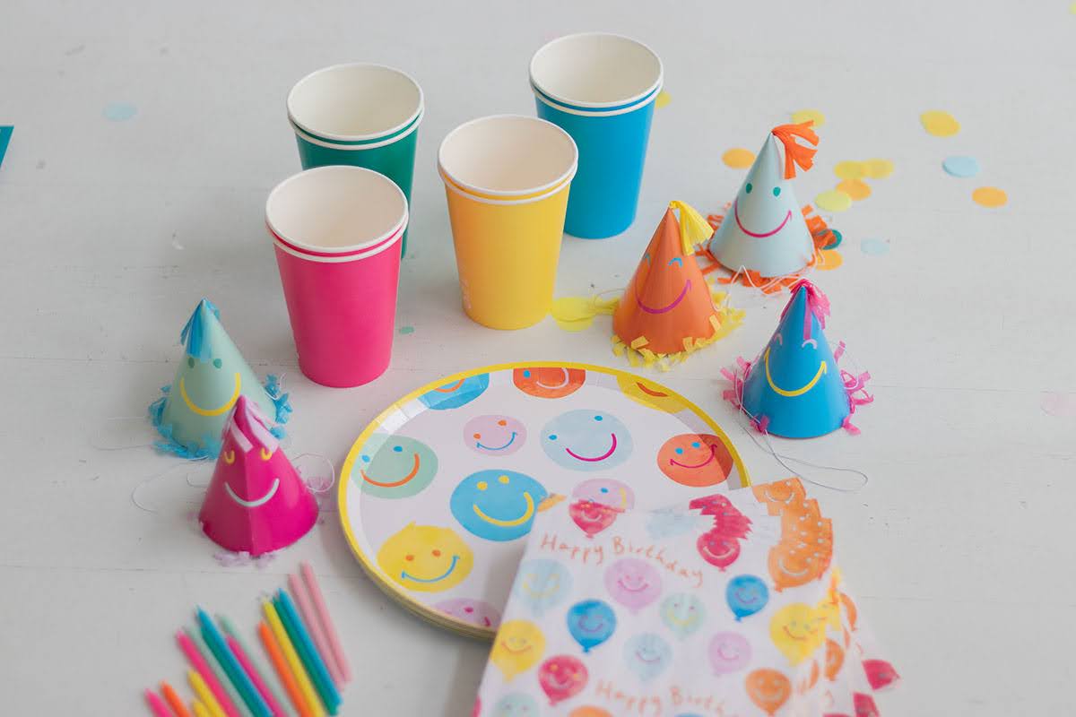 El kit incluye: platos, vasos, servilletas, velas y gorritos.