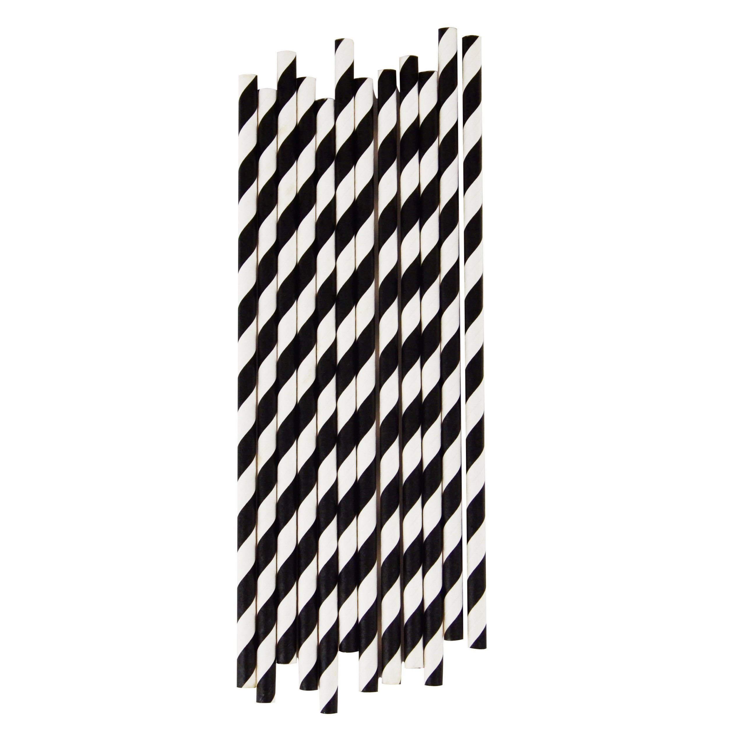 Pack de 10 pajitas de cartón con estampado de rayas en color negro y blanco.