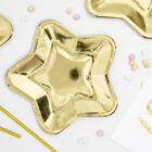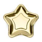 Pack de 6 platos desechables con forma de estrella dorada, miden 23cm.