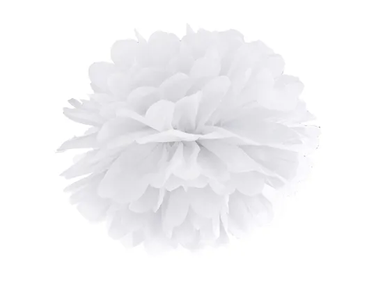 Pompom de papel seda en color blanco, una vez montado mide 25cm.