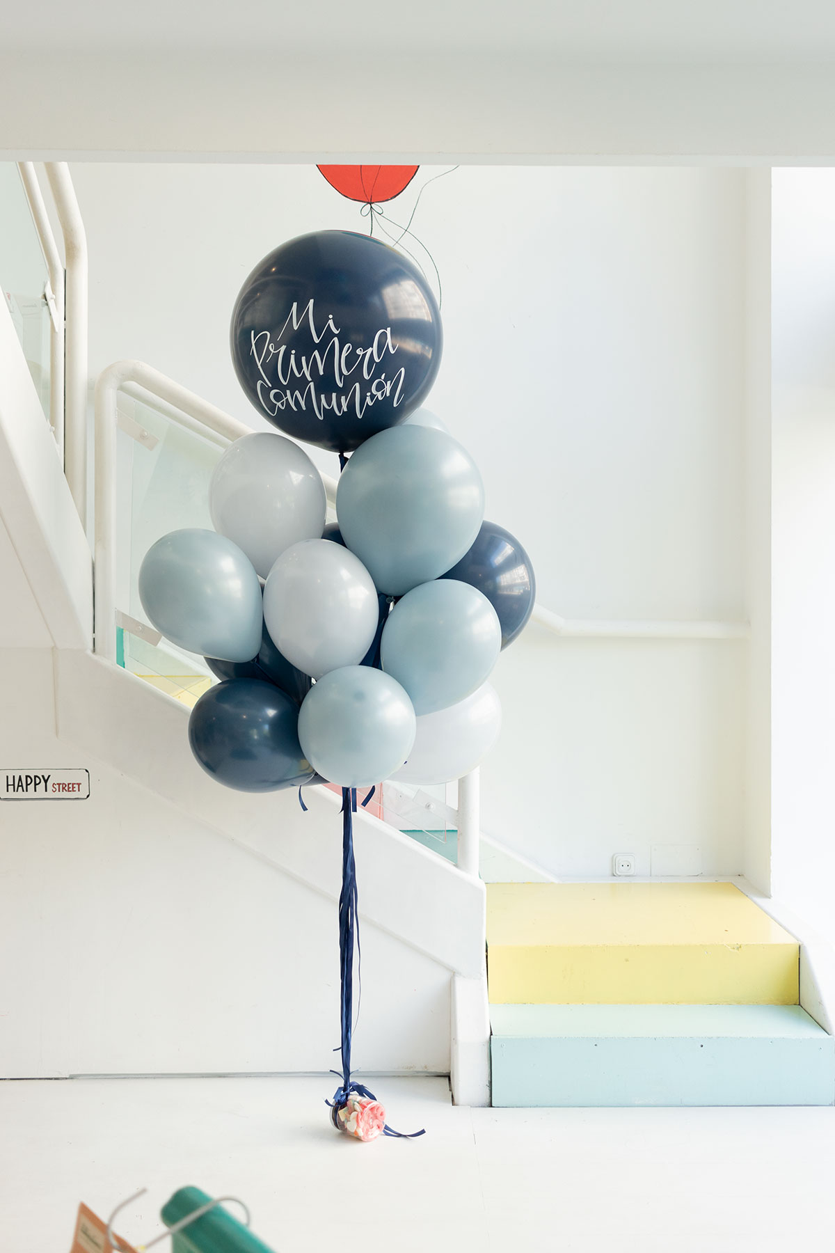 Súper ramo de globos de látex hinchados con helio, podrás dejarlo montado como viene o soltarlo y tener un montón de globos! Esta compuesto por un globo grande de 60cm, 2 globos de 40cm y 15 globos de 30cm. Podrás personalizarlo con el texto que quieras y elegir el peso.