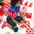 Rollo de papel de regalo estampado de rayas rosas y rojas, mide 70x200cm.