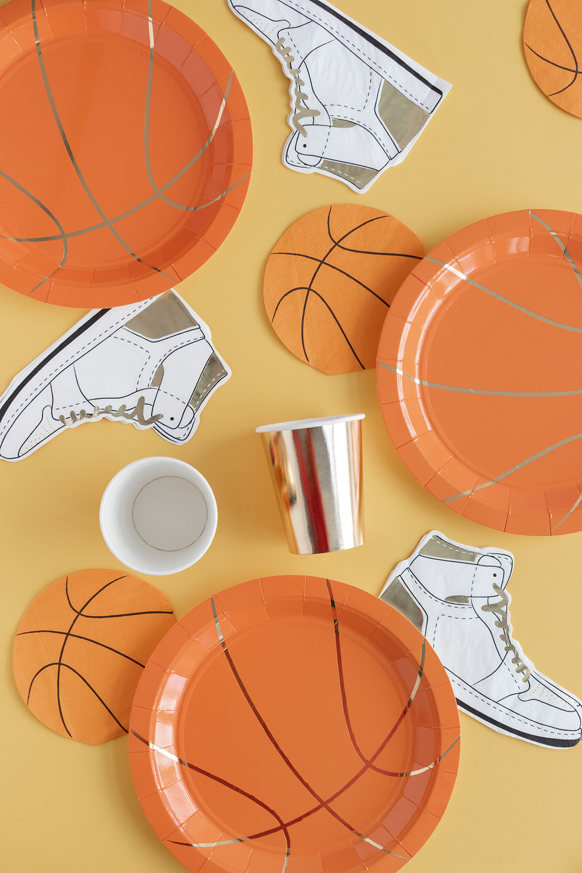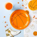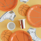 Pack de 24 servilletas de papel con forma de balón de baloncesto. Miden 12,5cm de diámetro.