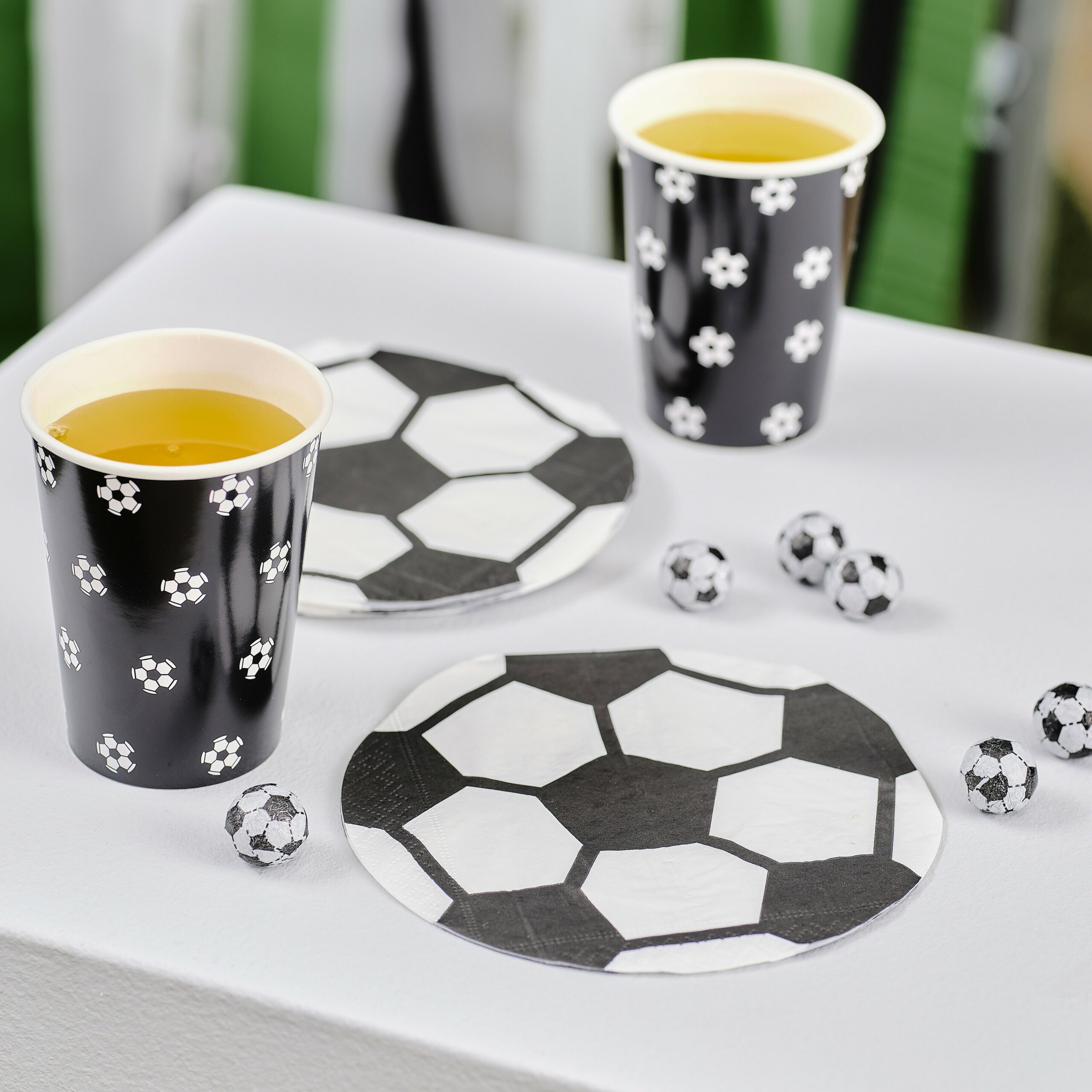 Pack de 17 servilletas de papel con forma de balón de fútbol. Miden 14,5cm de diámetro.