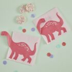Pack de 16 servilletas de papel con forma de dinosaurio en tonos rosas. Miden 16,5cm.