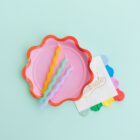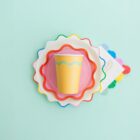 Pack de 18 servilletas de papel estampadas con “ Time to celebrate” en multicolor y dorado, decoradas con flecos multicolor en el borde. Miden 12cm aproximadamente.