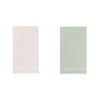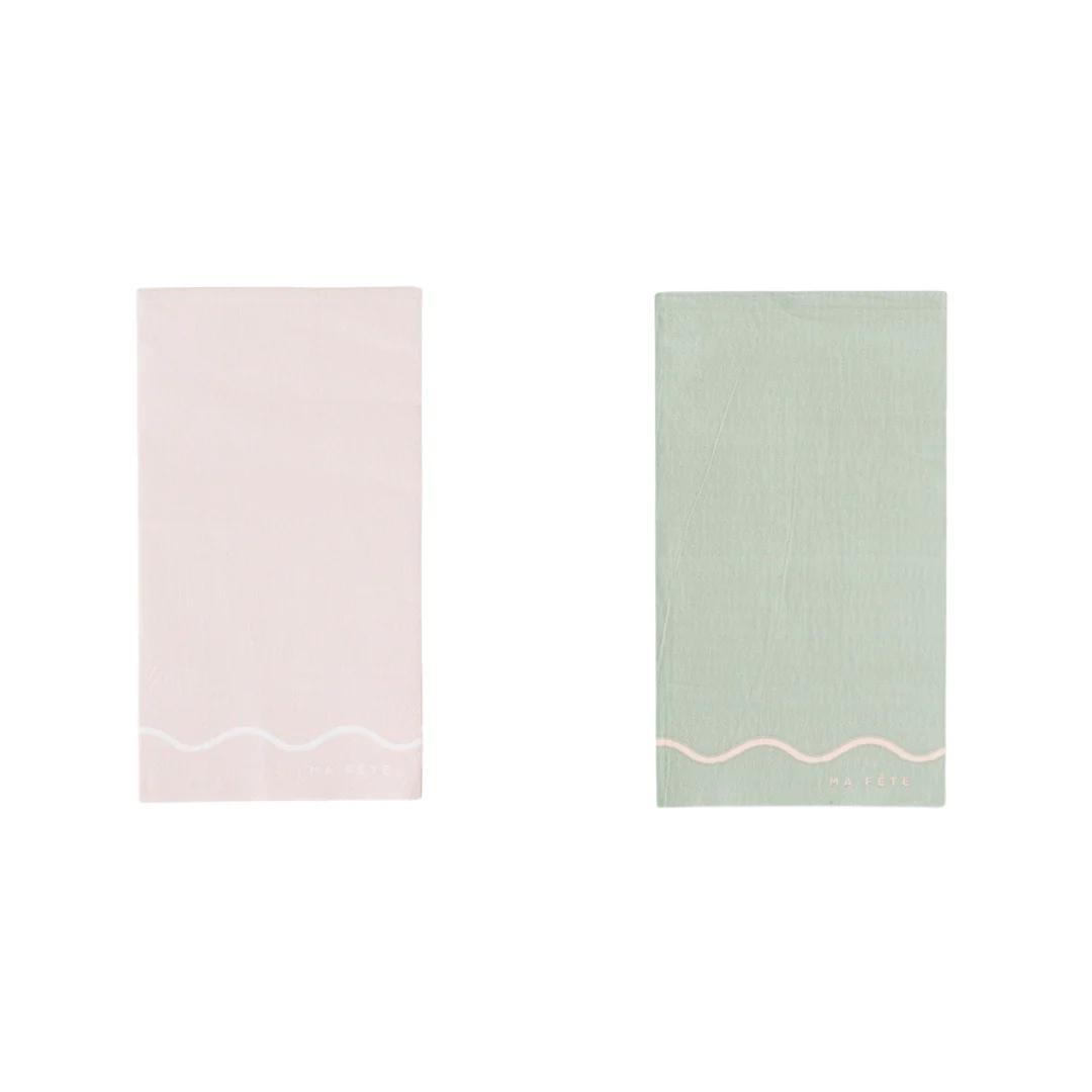 Pack de 16 servilletas de papel surtidas en color menta con una onda en rosa palo y en color rosa con la onda en blanco. Plegadas miden 10x20cm.