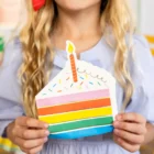 Pack de 18 servilletas de papel con forma de tarta de cumpleaños con sus velas, en tonos multicolor