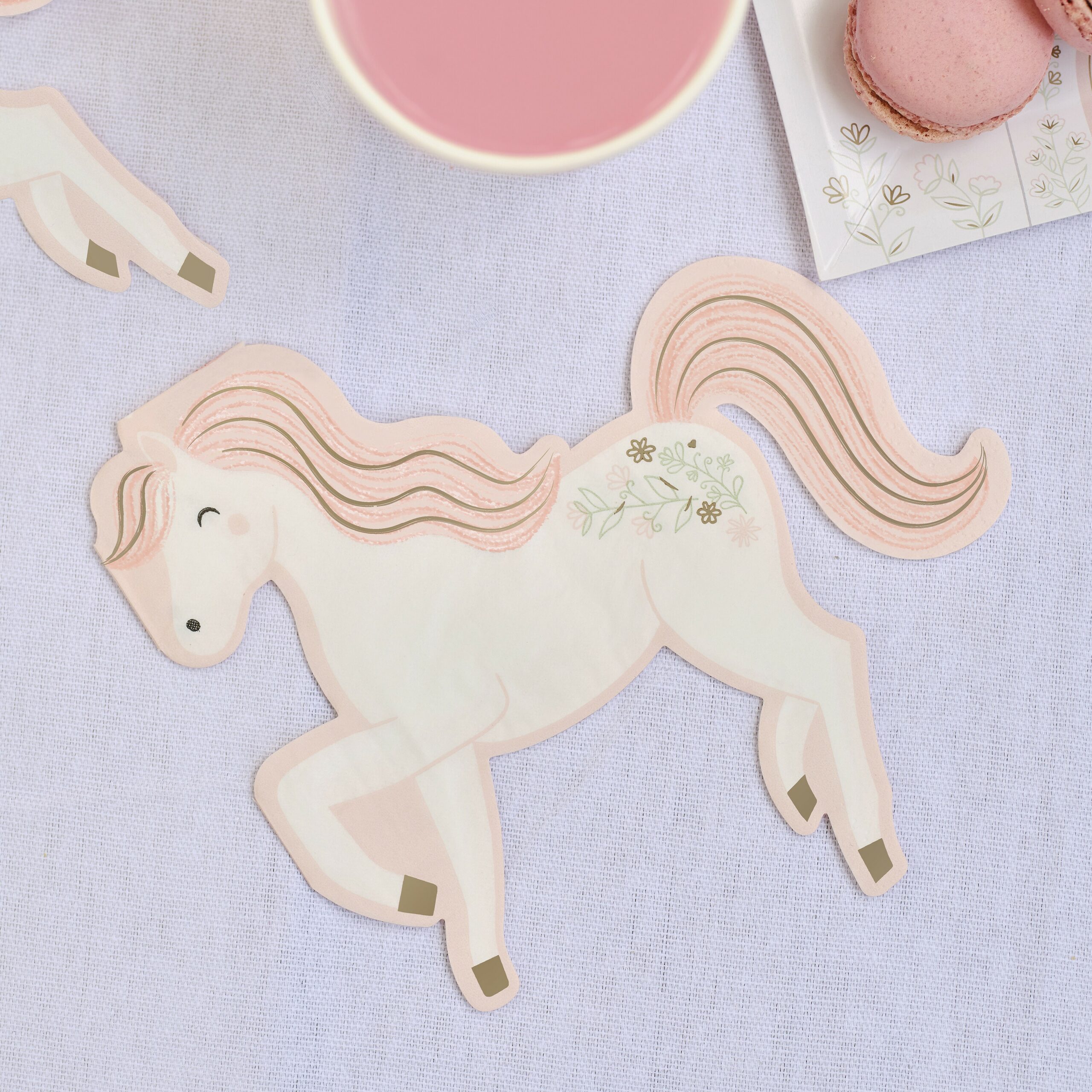 Pack de 16 servilletas de papel silueteadas con forma de unicornio, de colores pastel y algún detalle dorado. Son las servilletas más bonitas de unicornio que existen.