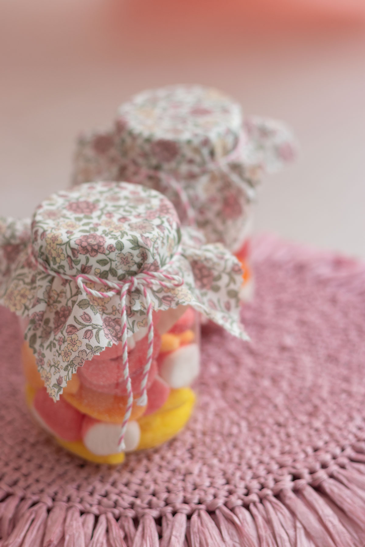 Tarro pvc apta para alimentos de 500ml de capacidad relleno de chuches y decorado con retales de tela. Podrás elegir la gama de color que quieres y pondremos retales de vichy, bámbula lisa o flores según disponibilidad en la gama seleccionada. Si tienes alguna especificación, podrás indicarlo en comentarios al final del pedido.