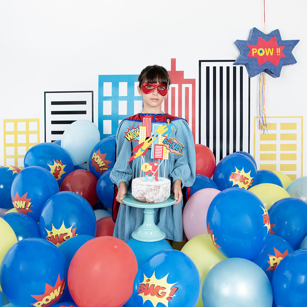 Pack formado por 7 toppers con temática de superhéroes. Miden 27cm y son imprescindibles para decorar una tarta de cumpleaños