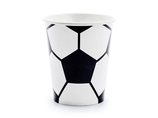 Pack de 6 vasos de papel con estampado de fútbol . Tienen capacidad para 220ml.