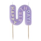 Vela con forma de S en color lila, con el texto “Happy Birthday” en color pastel. Mide 12cm x 7cm.